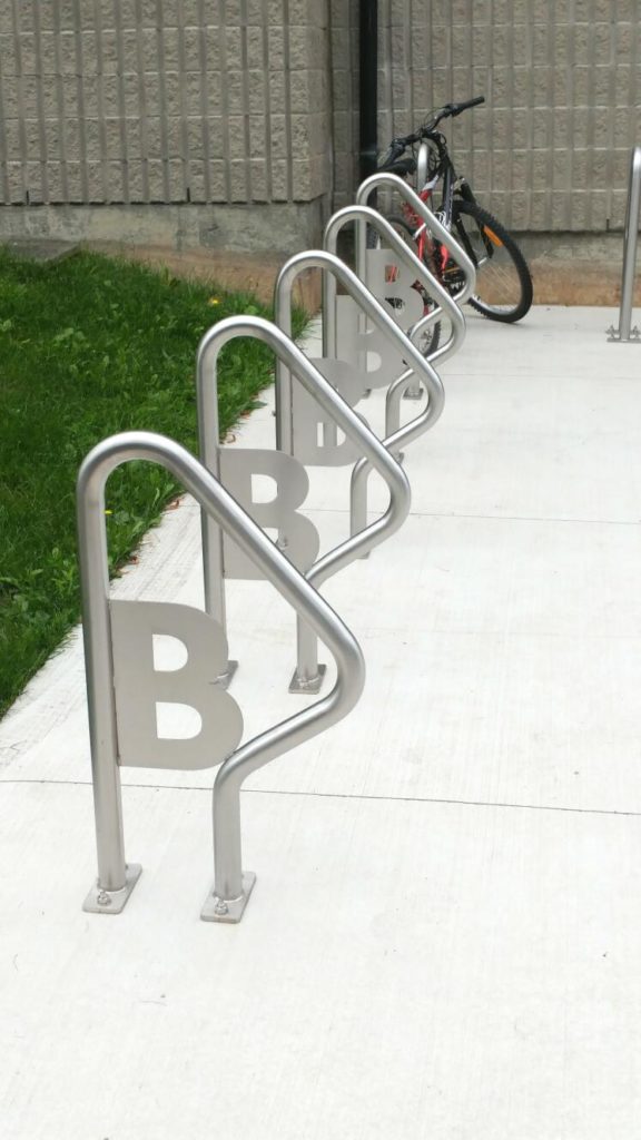 Custom Brock Bike Rack incorporates existing corporate logo to maximize visual identity.