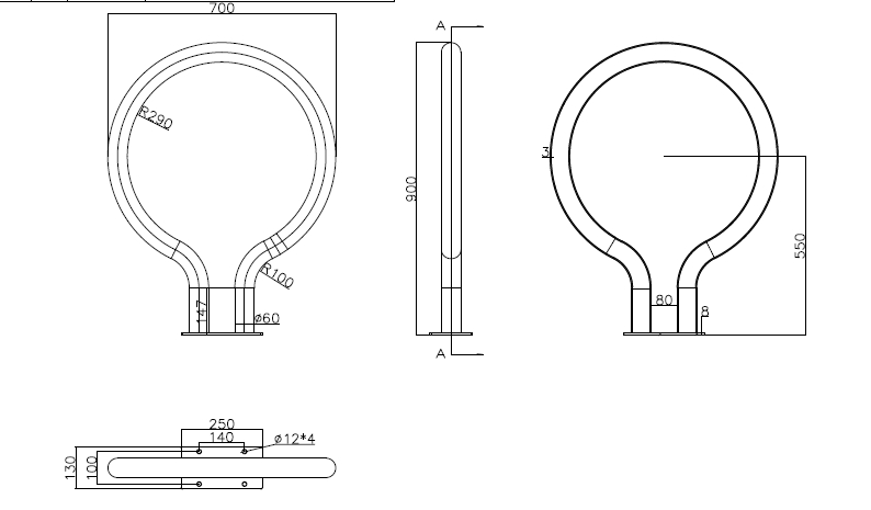 Simple loop style bike rack can be very securely fastened using up to 6 concrete anchor bolts. Optional inground mounting.