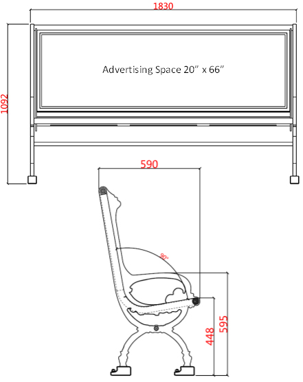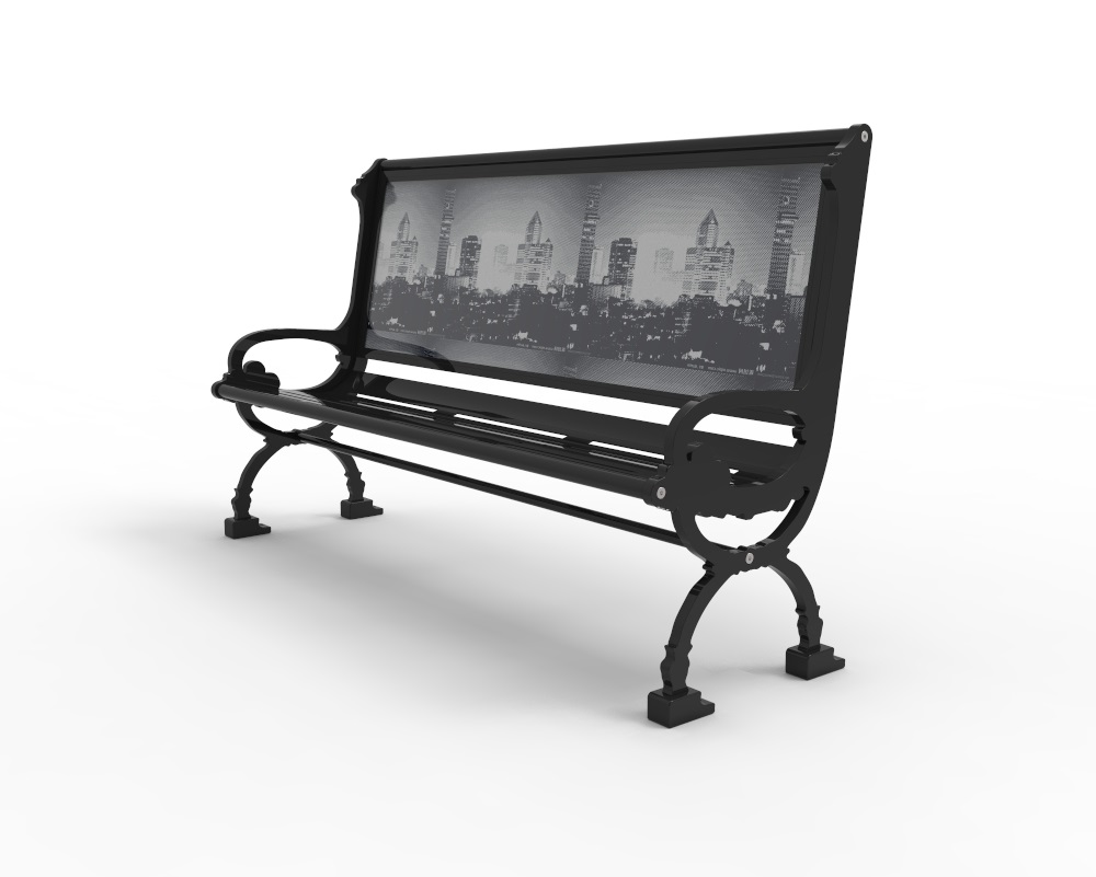 Classic style bench design suited to historical and downtown revitalization areas. “Place your Ad here!”