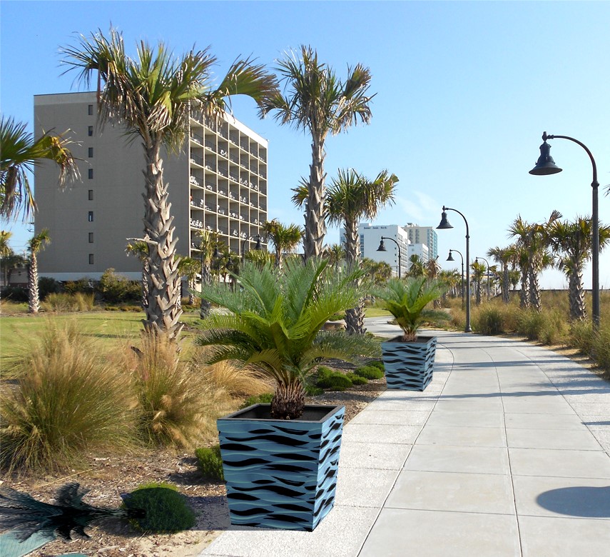 Contoured deep wave effect glass fiber reinforced concrete planter. Available in 3 sizes.