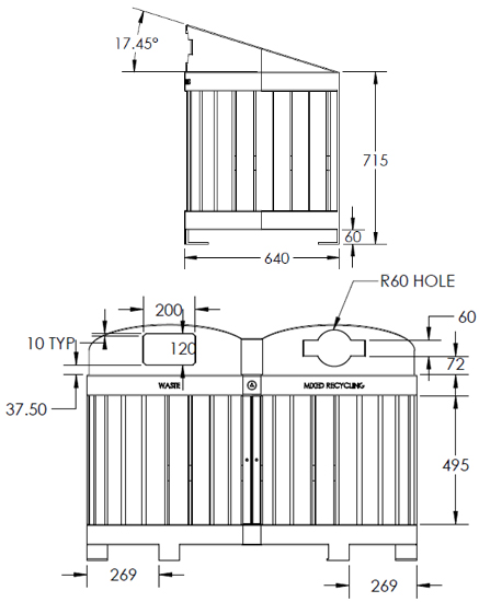 Compact and bold design with unique sloped top allows water to flow away from the unit. Compatible with the URBAN recycling station for use in parks, shopping corridors and university settings.